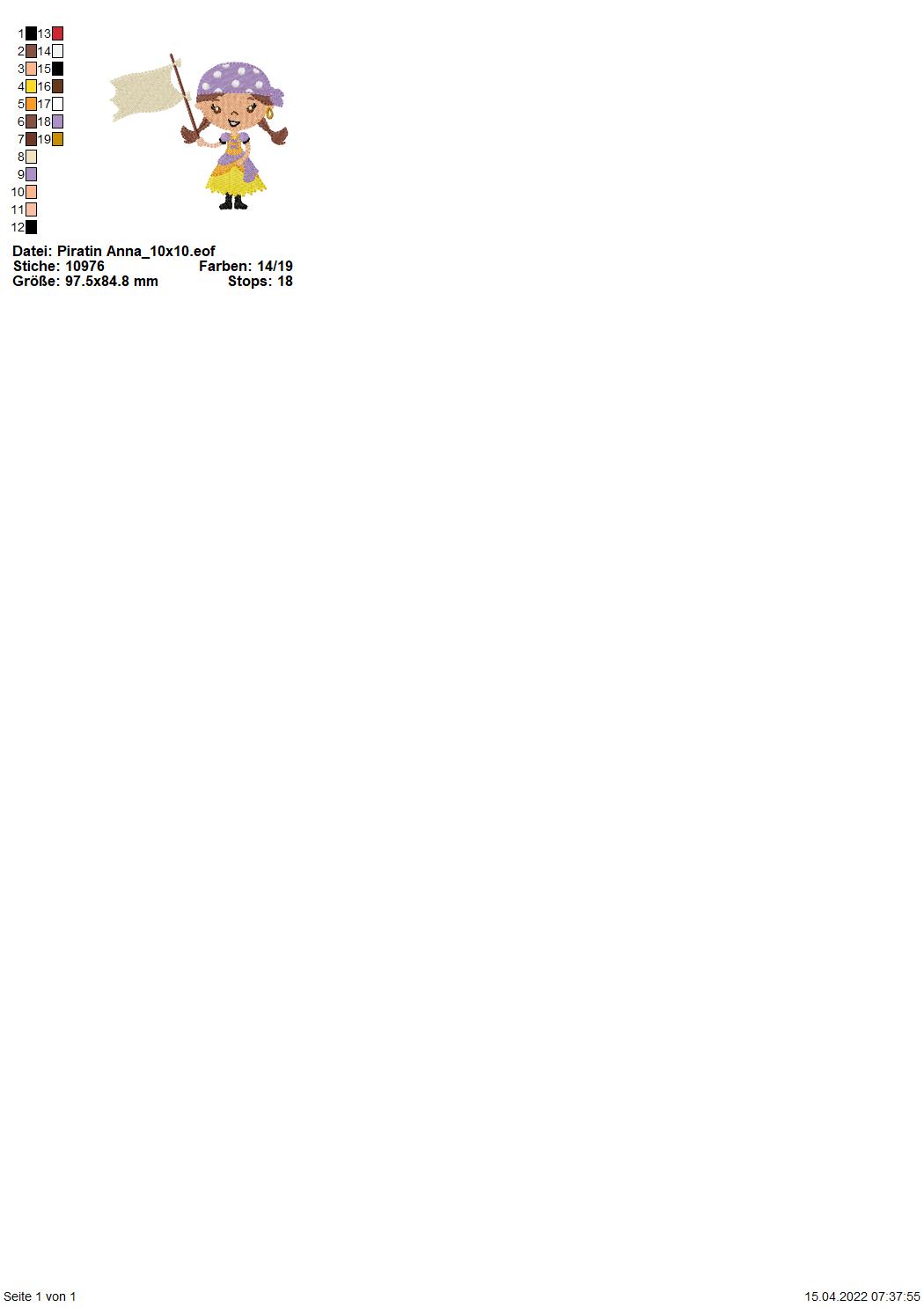 Stickdatei Piratin Anna für den 10x10 cm Rahmen.