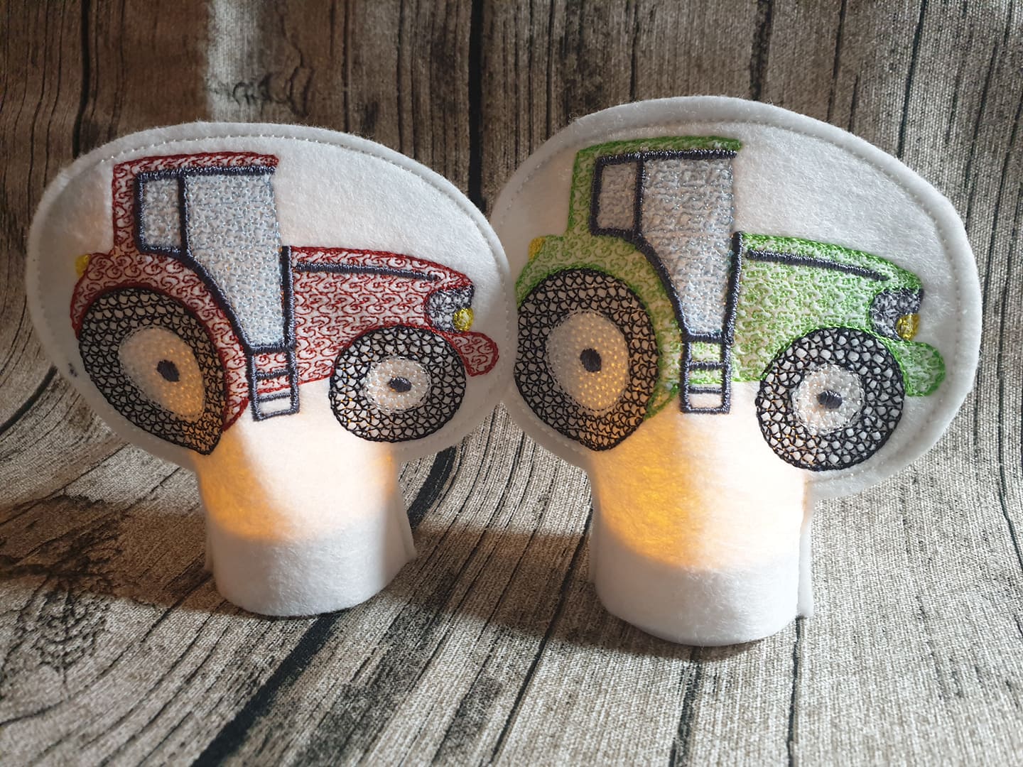 Teelichtcover mit Motiv Traktor als ITH Stickdatei für den 10 x 10 cm Rahmen.