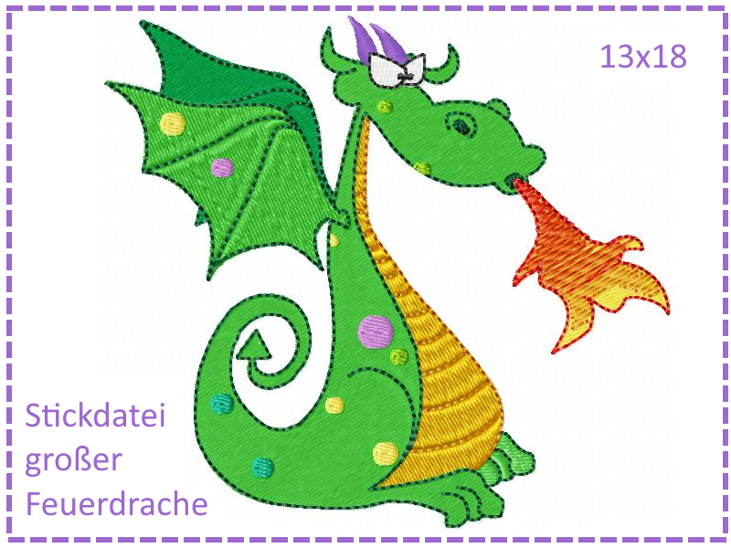 Großer Feuerdrache Stickdatei für den 13x18 cm Rahmen.