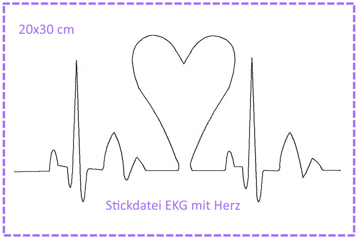 Stickdatei "Herzklopfen" EKG mit Herz für den 20x30cm Rahmen.