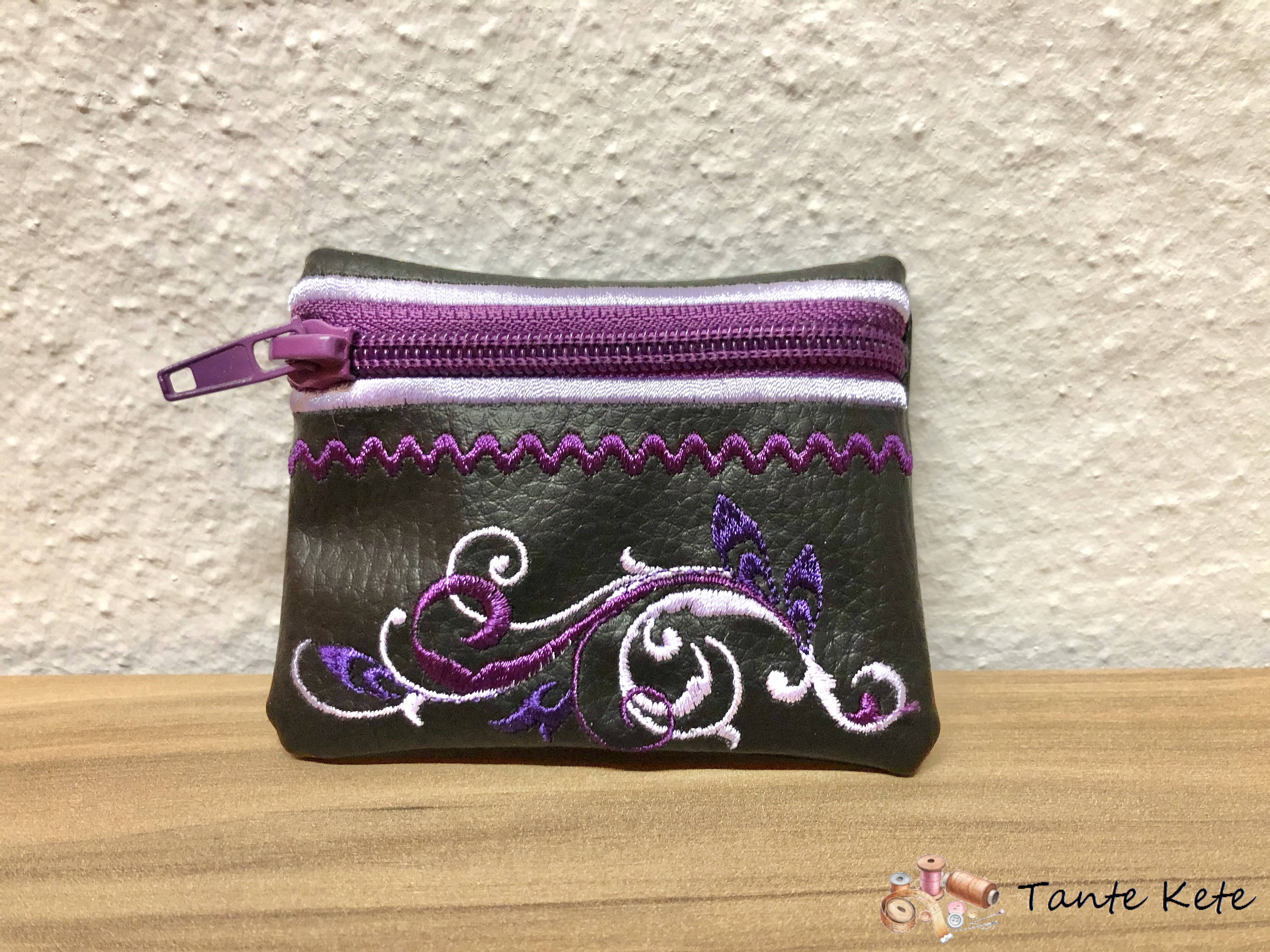 ♥ Kleiner Geldbeutel mit Reißverschluss aus Kunstleder mit Schnörkel-Stickerei.