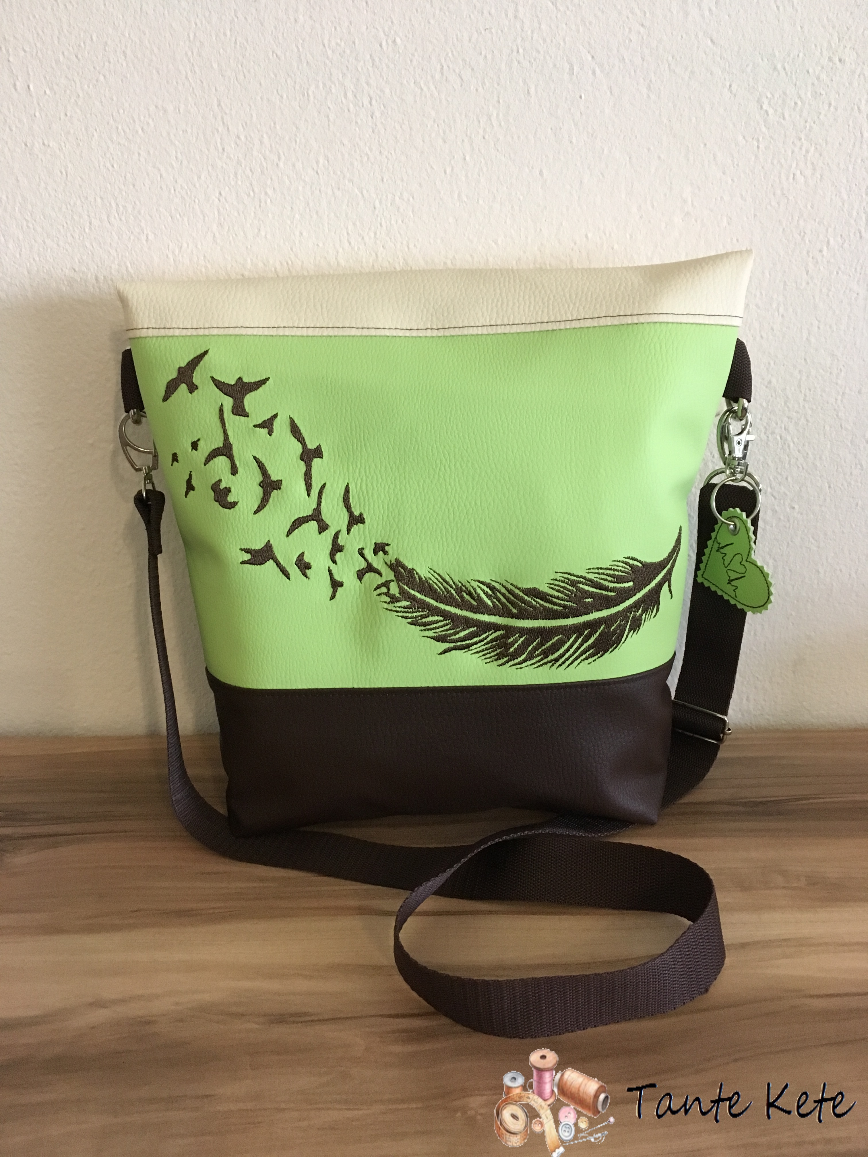 Umhängetasche "FoldOver" mit Stickerei Feder & Schwalben