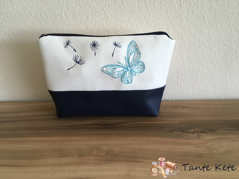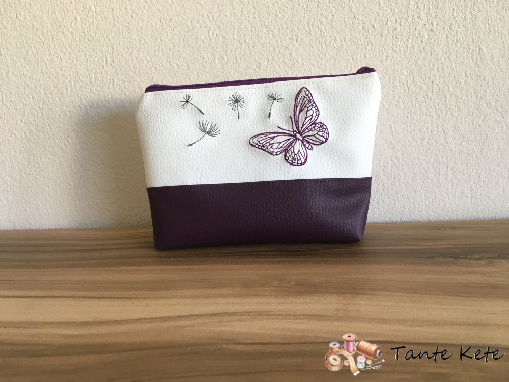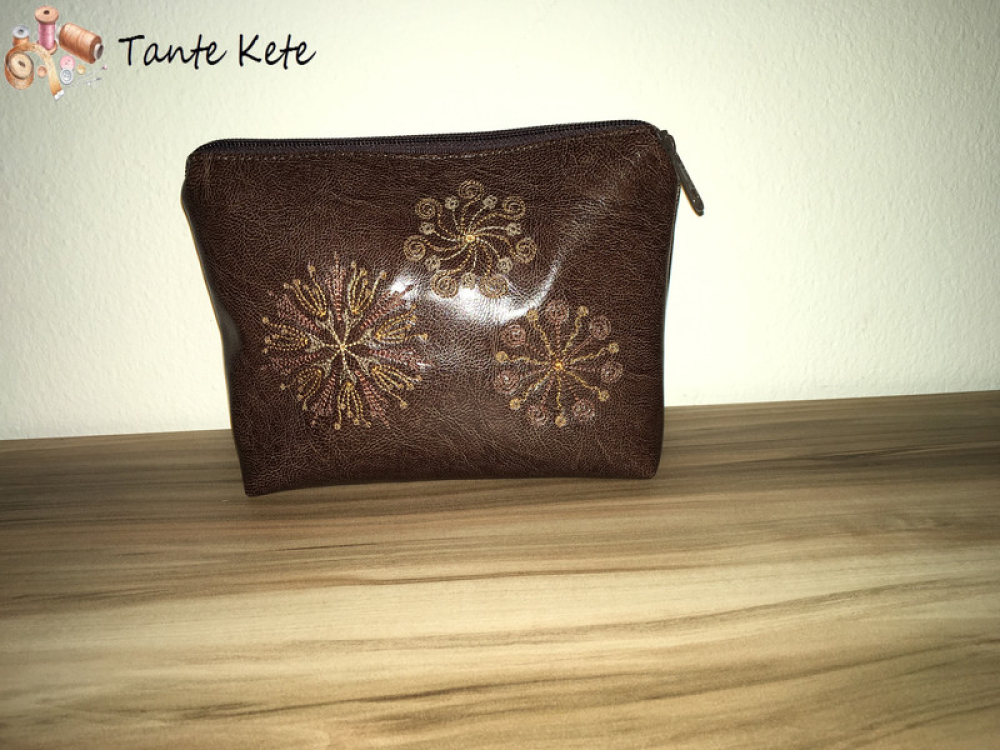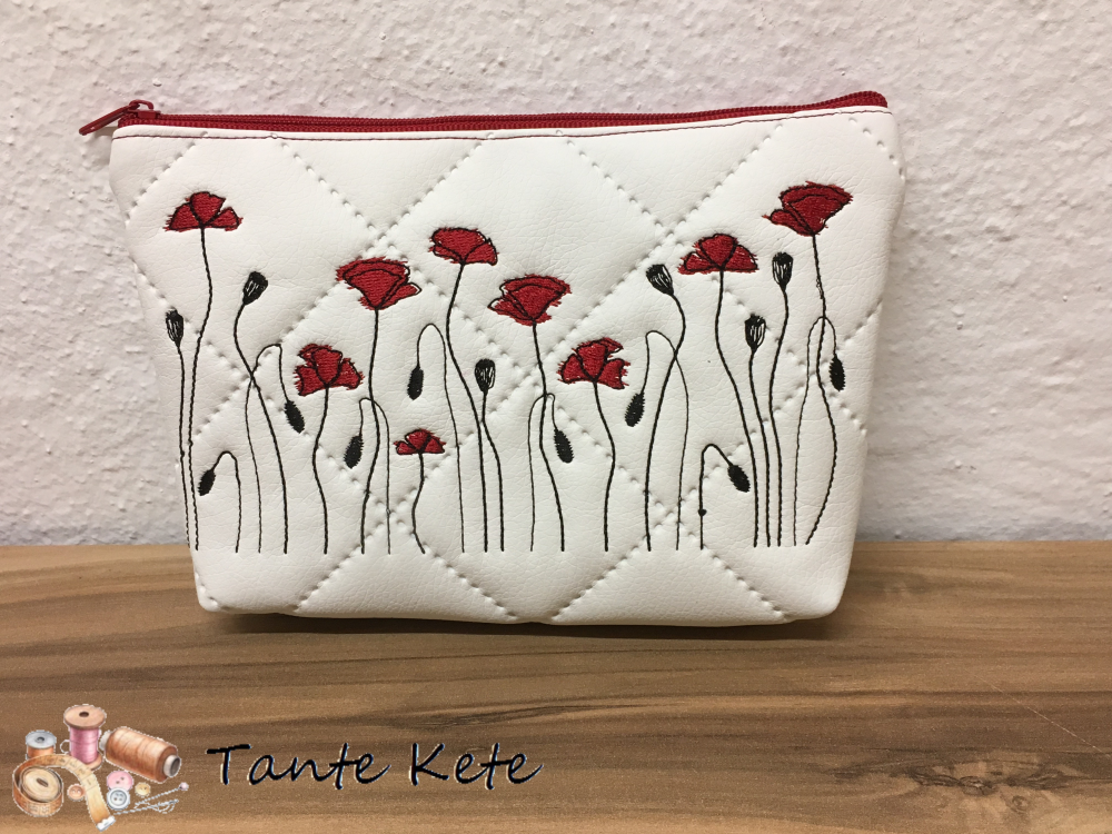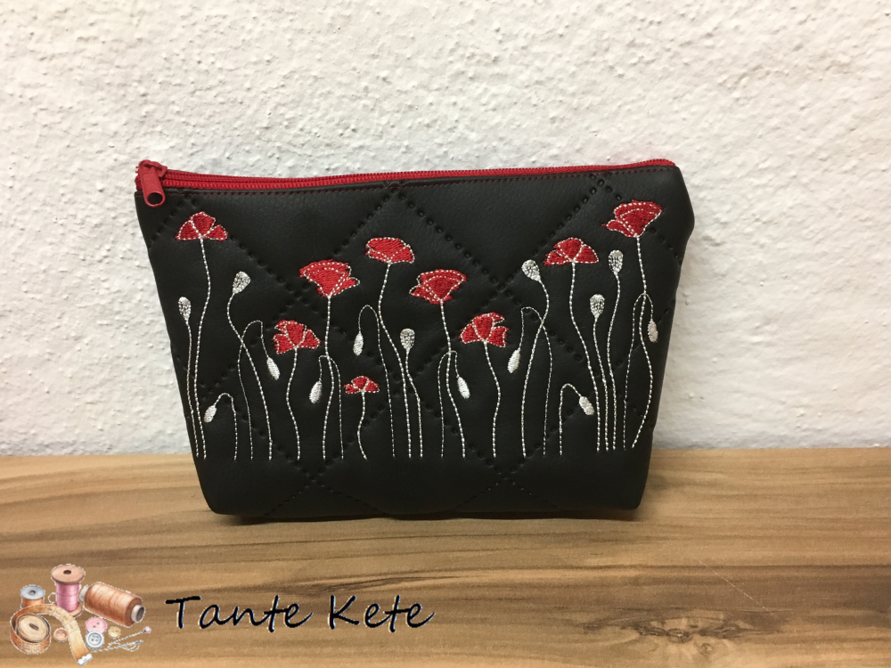 Schminktäschchen aus Steppkunstleder mit Stickerei Mohnblumen
